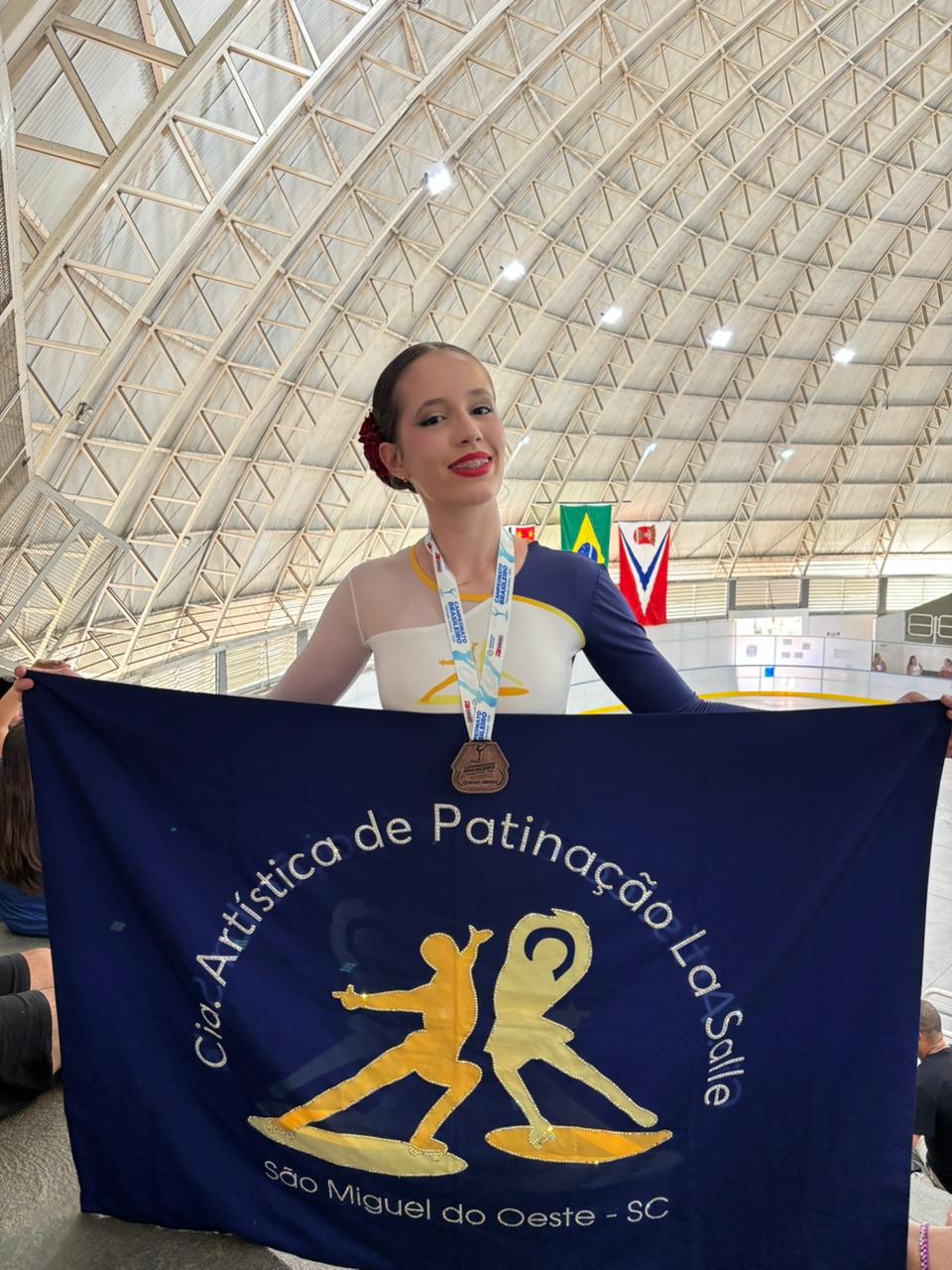 Representando a Companhia Artística de Patinação La Salle e o município de São Miguel do Oeste, Betina apresentou um programa com técnica, elegância e expressividade, resultado que garantiu lugar no pódio da competição nacional.
