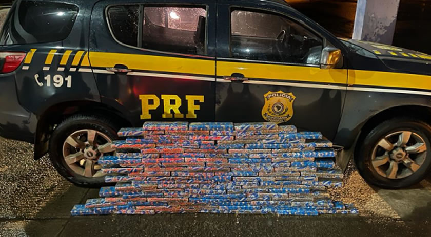 Durante fiscalização de trânsito na noite de domingo (25), policiais rodoviários federais apreenderam 105 quilos de maconha na BR-153 em Água Doce.