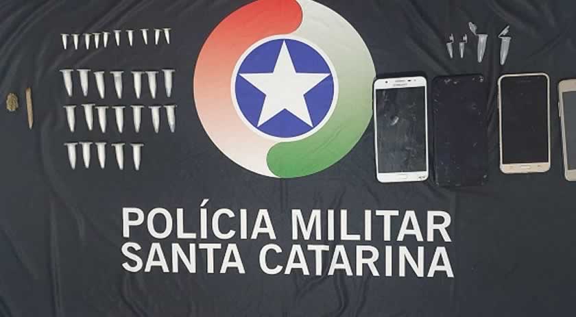 Com um dos homens foi encontrado um cigarro de maconha e com uma das mulheres abordadas uma carteira de cigarro com 24 pinos de cocaína, totalizando 30 gramas, e uma grama de maconha, sendo que a carteira de cigarro estava escondida na região da cintura dela.