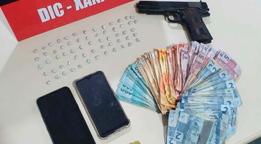 Durante o cumprimento das buscas, foram encontradas 62 porções de substância análoga a crack, 06 porções de maconha e um simulacro de arma de fogo. Após a localização das substâncias ilícitas, foi dado voz de prisão para a mulher e o homem.