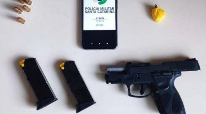 Um homem de 44 anos foi preso após fazer ameaça com arma de fogo de porte ilegal, por volta das 16h desta segunda-feira (19), na Marginal Leste Plínio Arlindo de Nês, no Bairro Dom Gerônimo, em Chapecó, Oeste de Santa Catarina.
