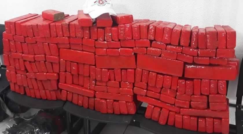 A guarnição policial abordou uma camioneta Fiat/Pulse Audace, emplacada no Município de Belo Horizonte/MG, conduzida por um homem de 29 anos, que tinha como passageiro um homem de 21 anos. Em revista veicular foram localizados no porta malas 8 pacotes de substância análoga a maconha. Contabilizados, somaram 217 tabletes, pesando 142,9 kg.