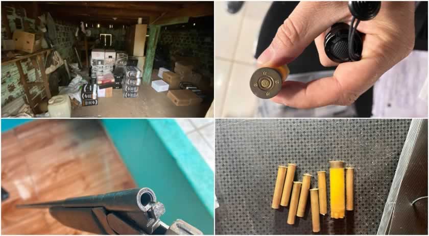 No decorrer das buscas realizadas nesta data duas pessoas foram presas em flagrante por posse ilegal de arma de fogo. Em outro local foram encontradas cerca de cem caixas de vinho objeto de descaminho, além de dois galões de agrotóxicos de origem estrangeira introduzidos de forma irregular no país.