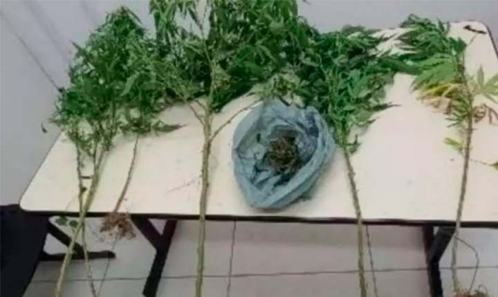 Em observação no local, policiais teriam encontrado e recolhido seis pés de maconha no quintal do imóvel. Dentro do quarto do suspeito também havia folhas secas do mesmo entorpecente.