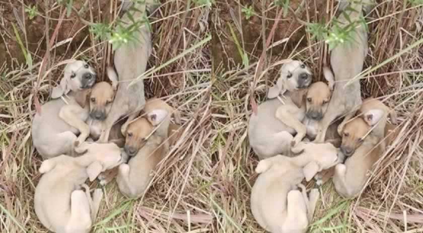 Seis cães são abandonados em estrada e polícia resgata filhotes no Oeste de SC