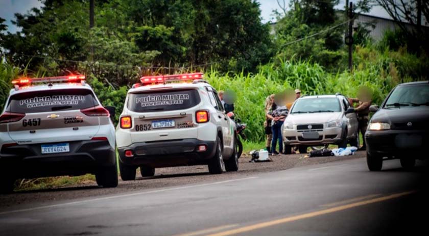 Na tarde de quarta-feira (08), uma Guarnição da Polícia Militar estava em rondas pelo interior do município de São Miguel do Oeste. Ao adentrar na BR 163, nas proximidades do Laticínios Terra Viva, os policiais avistaram três motocicletas que transitavam no sentido Guaraciaba/São Miguel do Oeste. Conforme relatório da PM, as três motos transitavam juntas e, ao avistarem a viatura, pararam rapidamente num refúgio próximo.