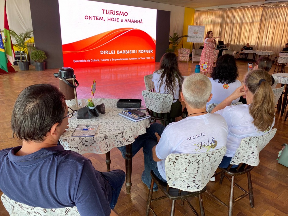 Para iniciar a tarde, foi realizado o intervalo Cultural de Itapiranga e, em seguida, a Secretaria Municipal de Turismo, Cultura e empreendimentos turísticos de Treze Tilias, Dirlei Rofner, abordou a palestra “Turismo: ontem, hoje e sempre!”. Na sequência, o Intervalo cultural de São Miguel do Oeste foi realizado, seguido da apresentação “Turismo de Aventura e Corporativo”, ministrado por Juliano Romancini- Proprietário Da Trilha Treinamentos, de São Miguel do Oeste.