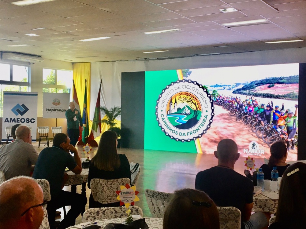 No final da manhã, o empreendedor Vanduir Deters, de Tunápolis, realizou a apresentação do “Circuito de Cicloturismo Caminhos da Fronteira”. Esse projeto é financiado pela Ameosc, definido e aprovado em uma assembleia dos prefeitos, em 2022, para a contratação da Natur Cicloturismo, que desenvolveu um roteiro para os turistas.