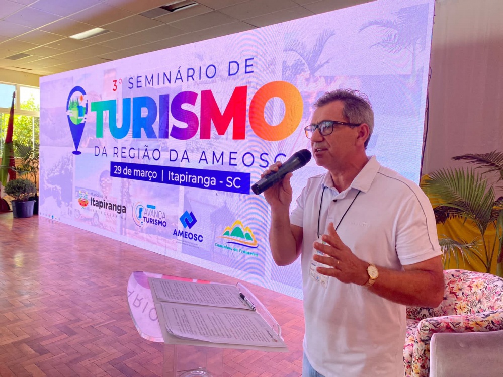 A Associação dos municípios do Extremo Oeste de Santa Catarina (Ameosc), por meio do Colegiado de Turismo e projeto Caminhos da Fronteira, realizou o III Seminário de Turismo na quarta-feira (29), em Itapiranga. A atividade reuniu mais de 200 pessoas ligadas ao setor, como empreendedores, dirigentes, lideranças municipais e simpatizantes. Na abertura oficial, o prefeito de Itapiranga, Alexandre Ribas, esteve presente representando os prefeitos da região e o presidente da Ameosc.