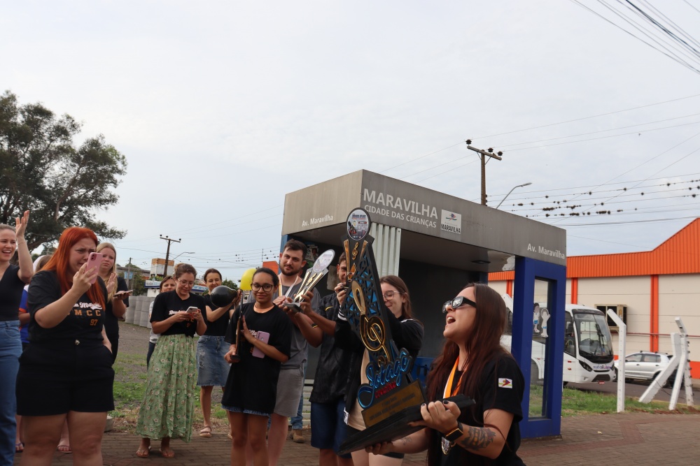 A chegada à cidade foi festiva. Pais e familiares aguardaram desde cedo os ônibus, próximo ao portal de acesso a Maravilha, onde receberam a banda com muita admiração. Em seguida, a carreata percorreu as ruas, com os troféus sendo exibidos em uma caminhonete, acompanhada pelo ônibus da BMCC e pelos veículos de amigos e apoiadores. Na Prefeitura de Maravilha, na presença de representantes da Administração Municipal, houve um momento especial de agradecimento a todos que contribuem com o trabalho da banda.