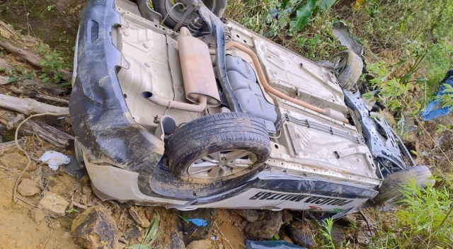 Viatura da PM despenca em ribanceira de 50 metros com dois policiais dentro em SC