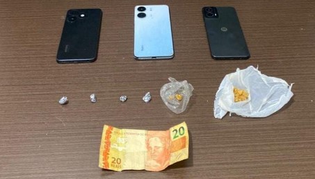 Em busca pessoal, os policiais encontraram com o homem três pedras de crack prontas para venda, além de diversas pedras embaladas em uma sacola. Na residência da condutora, foram apreendidas mais duas pedras de crack. Também foram recolhidos três celulares e R$ 20 em espécie.