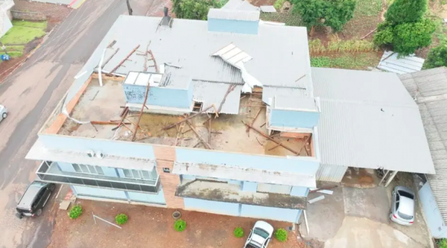 Duas escolas municipais, Aito Ozelame e Tereza Migliorini, sofreram pequenos danos no telhado, sem comprometimento estrutural ou riscos à segurança.