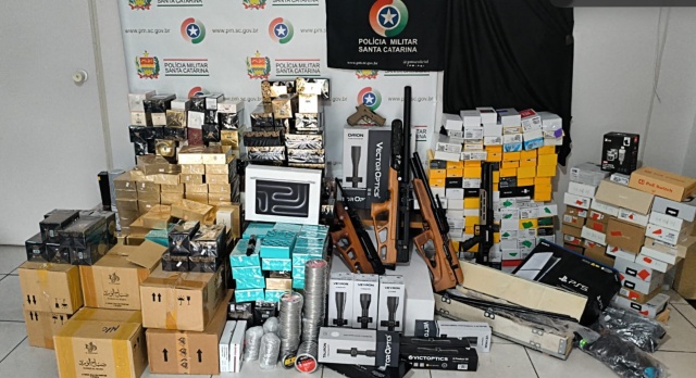 Entre os itens apreendidos estavam grande quantidade de celulares, perfumes, eletrônicos, vestuário, acessórios, equipamentos de airsoft, lunetas, peças e acessórios para armas de pressão (PCP), videogame, notebook, nobreaks e outros produtos diversos.