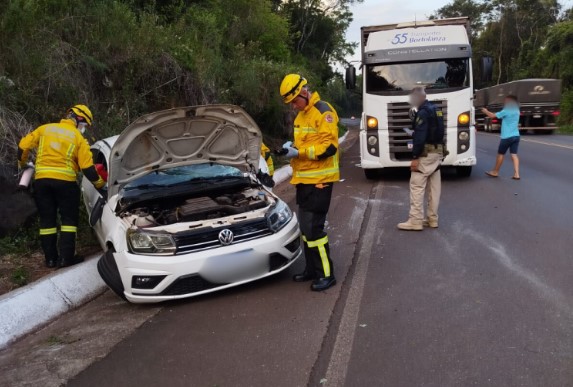 Uma colisão entre um carro e um caminhão resultou no capotamento do veículo de passeio na BR-282, altura da Linha Belo Horizonte em Maravilha.