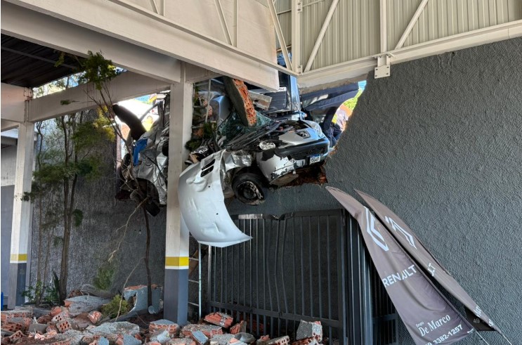 No momento da colisão, o carro não estava ocupado. Com o impacto, o veículo foi lançado contra a estrutura de uma oficina mecânica, derrubando parte do muro e ficando preso, escorado por um pilar.