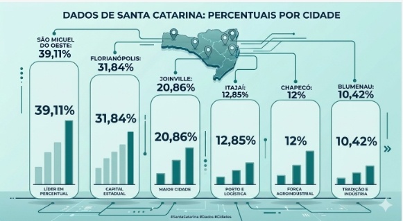 No comparativo com grandes cidades catarinenses, São Miguel do Oeste aparece na liderança em crescimento proporcional, superando centros econômicos tradicionais e evidenciando a força do desenvolvimento no interior.