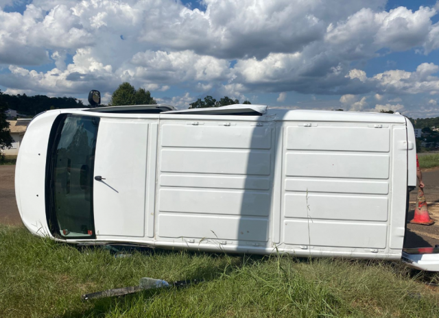 No veículo lateralizado, havia uma vítima em encarceramento mecânico, em pé no compartimento. Após estabilização da van, foi realizada abertura da porta e o condutor saiu por meios próprios.