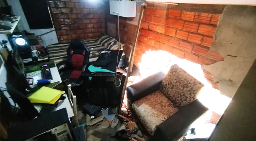 A colisão provocou danos significativos na estrutura da residência, que foi interditada pela Defesa Civil Municipal devido aos prejuízos, como forma de garantir a segurança dos moradores.