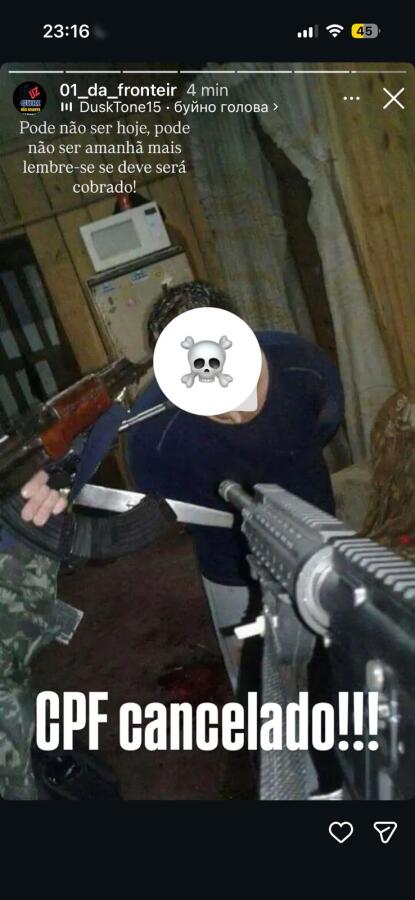 O grupo utilizava uma página no Instagram, denominada “01 da Fronteira”, para expor supostos devedores e exigir valores mediante grave ameaça. As vítimas eram coagidas com mensagens intimidatórias, inclusive ameaças de morte, além do envio de imagens de armas e de pessoas agredidas, bem como dados pessoais, como fotografias de residências e localização.