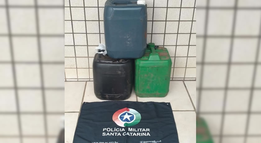No Trevo de Idamar foi realizada abordagem de um caminhão e localizado três recipientes com 45 litros de combustível de forma ilegal, de origem Argentina.