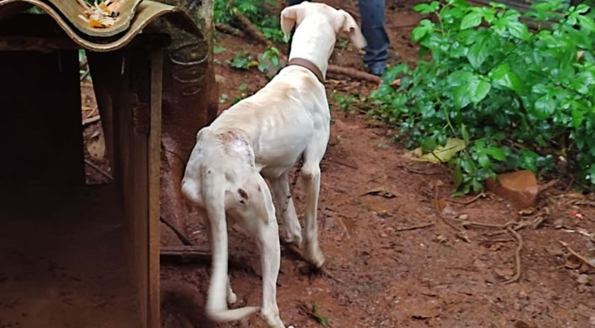 Cachorros estavam passando fome e sede, e seguiam amarrados em correntes