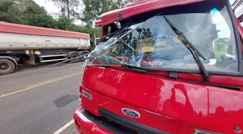 De acordo com o que foi apurado no local, foi uma colisão traseira entre um caminhão leiteiro e uma carreta. O Corpo de Bombeiros atendeu uma vítima, que apresentava ferimentos leves.