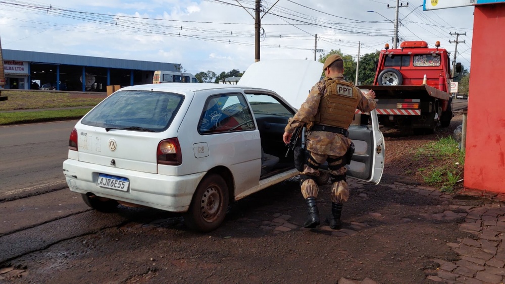 O condutor disse que havia adquirido o veículo de um homem em Chapecó e que, por não ter realizado os trâmites de transferência do automóvel, não sabia que tratava-se de produto roubado.