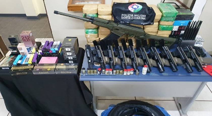 As armas e drogas apreendidas foram encaminhada à Polícia Federal de Chapecó e os cigarros para a Receita Federal de Chapecó.