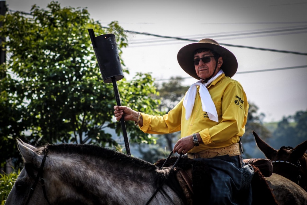 Carregando a Chama Crioula, a cavalgada mantém viva as raízes pioneiras da Região e das tradições. A 32ª edição era para ter sido realizada em 2021, mas foi cancelada por conta da pandemia.