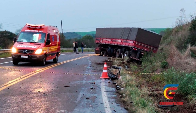 Um grave acidente ocorreu na SC 305, trecho entre as cidades de Campo Erê e Anchieta, por volta das 18h deste domingo (11). A colisão envolveu uma carreta com placas de Palma Sola, um caminhão tanque com placas de Anchieta e um Ford Fusion com placas de Coronel Martins.
