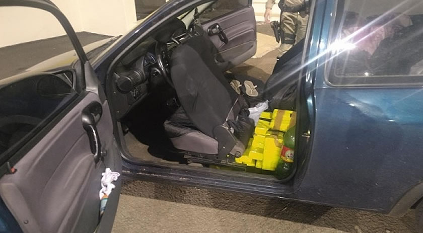 No veículo estava um casal, ele com 21 e a mulher com 23 anos, ambos sem passagens policias. Durante as buscas, um forte odor de entorpecente foi sentido pelos policiais, que localizaram no interior do veículo 72 quilos de maconha.