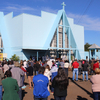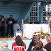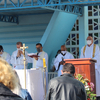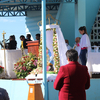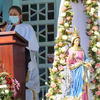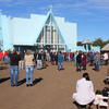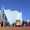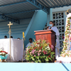 As missas são realizadas ao ar livre, sendo que os cuidados de proteção contra o coronavírus estão sendo tomados com a obrigatoriedade do uso de máscara e o distanciamento entre o público.