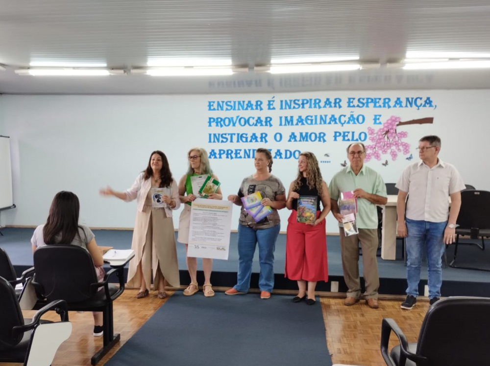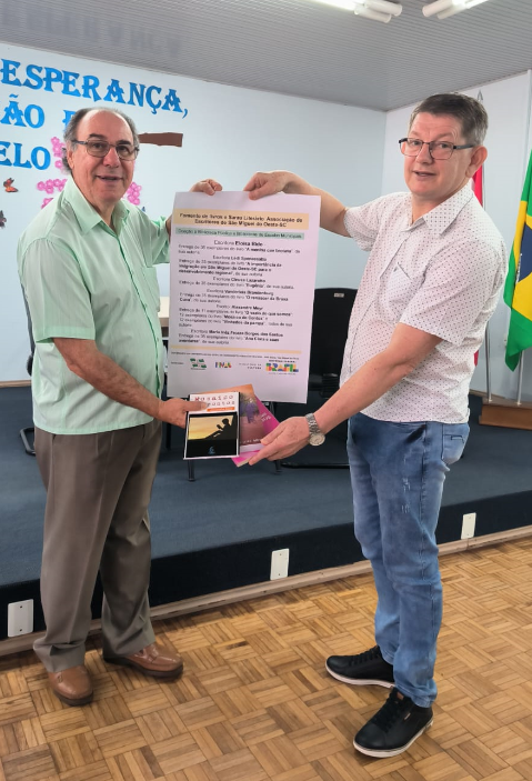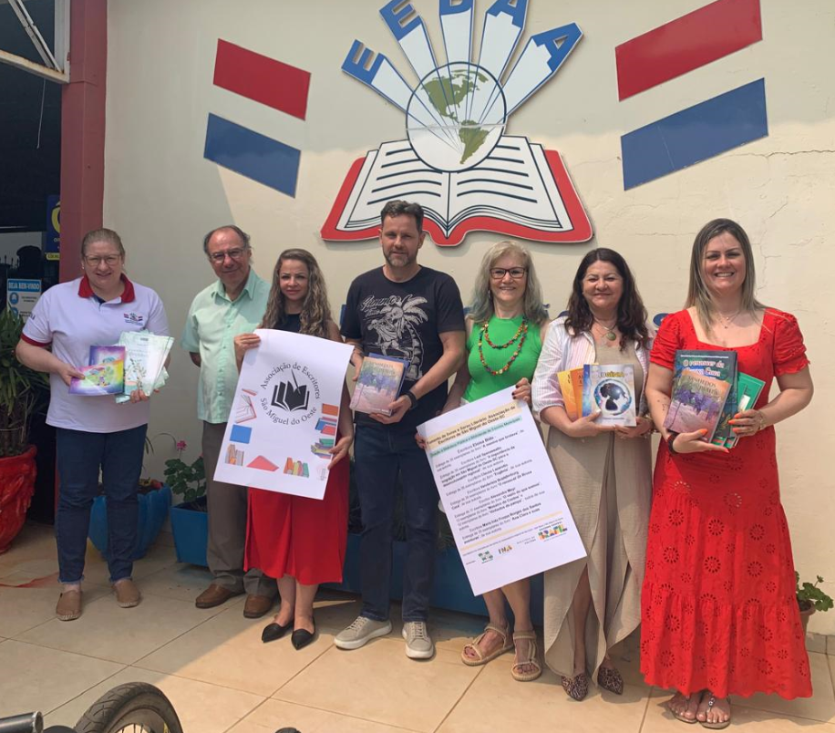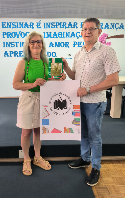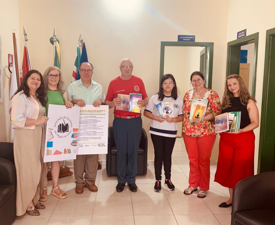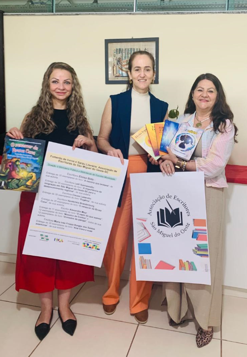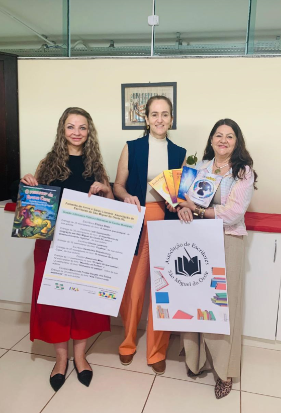 A Associação dos Escritores de São Miguel do Oeste, representada pelos escritores Leda Spenassatto, Maria Inês Borges, Vanderleia Brandebug, Cleusa Lazarotto e Alexandre Meyer, cumprindo umas das contrapartidas do Edital de Chamamento Público 001/2024 - Lei Aldir Blanc, fizeram a doação de obras de suas autorias na Secretaria de Educação, para as diretoras dos Colégios Municipais, e também na Biblioteca Pública Municipal. Ainda, foram contemplados os Colégios Estaduais.