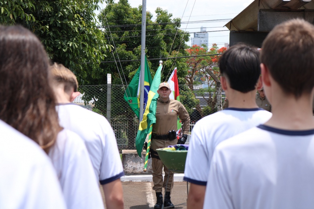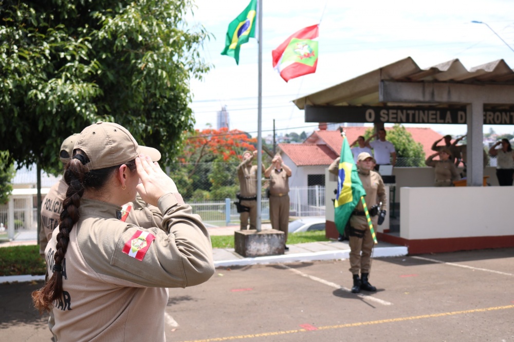 No início da tarde desta terça-feira, 19, foi realizada a solenidade alusiva ao Dia da Bandeira na sede do 11º Batalhão de Polícia Militar de Fronteira, em São Miguel do Oeste, SC. A data é comemorada anualmente no Brasil, sendo uma ocasião para reflexão sobre o simbolismo e a importância da Bandeira Nacional.