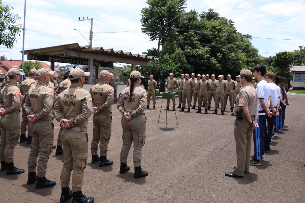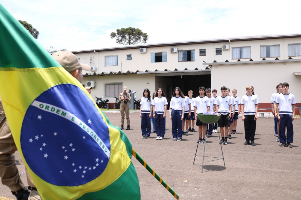 A cerimônia contou com a presença do pelotão de alunos do Curso de Formação de Sargentos e de uma turma de estudantes do Colégio Cívico Militar Professor Jaldyr Bhering Faustino da Silva, em um momento que uniu civis e militares em um exercício de cidadania.