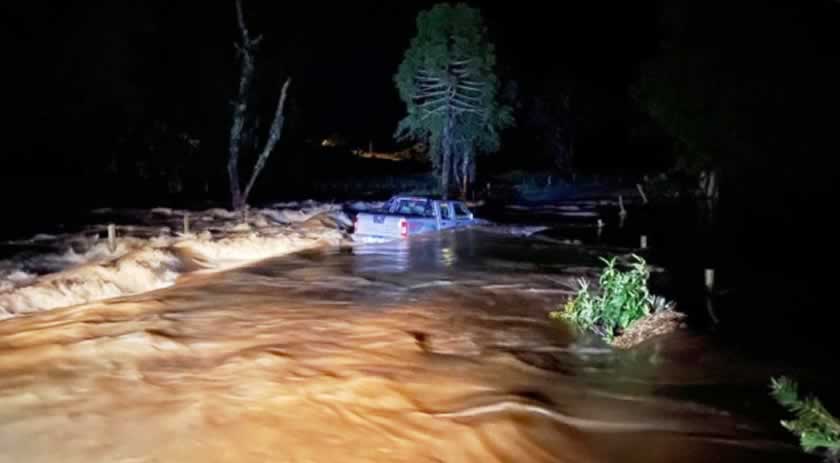 Um casal de Santa Catarina optou por deixar o carro para trás e se pendurar em uma cerca para escapar da forte correnteza do Rio dos Bugres, em Urubici, na Serra Catarinense. O caso ocorreu durante a madrugada deste domingo (27).