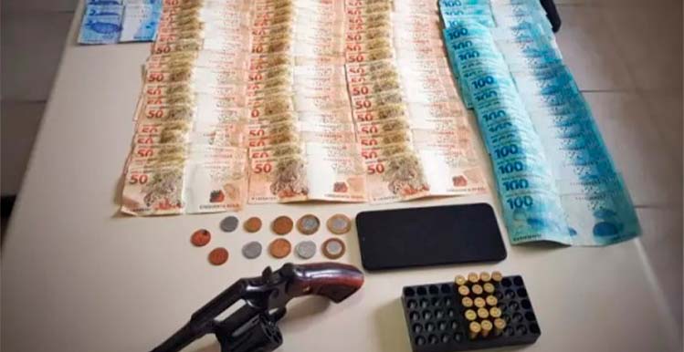 Após localizar o carro, os policiais fizeram a abordagem. No veículo foram encontrados o dinheiro e um revólver calibre 38, com seis munições. A polícia não informou qual era a cidade de origem do homem, nem o motivo do mandado de prisão que havia contra ele.