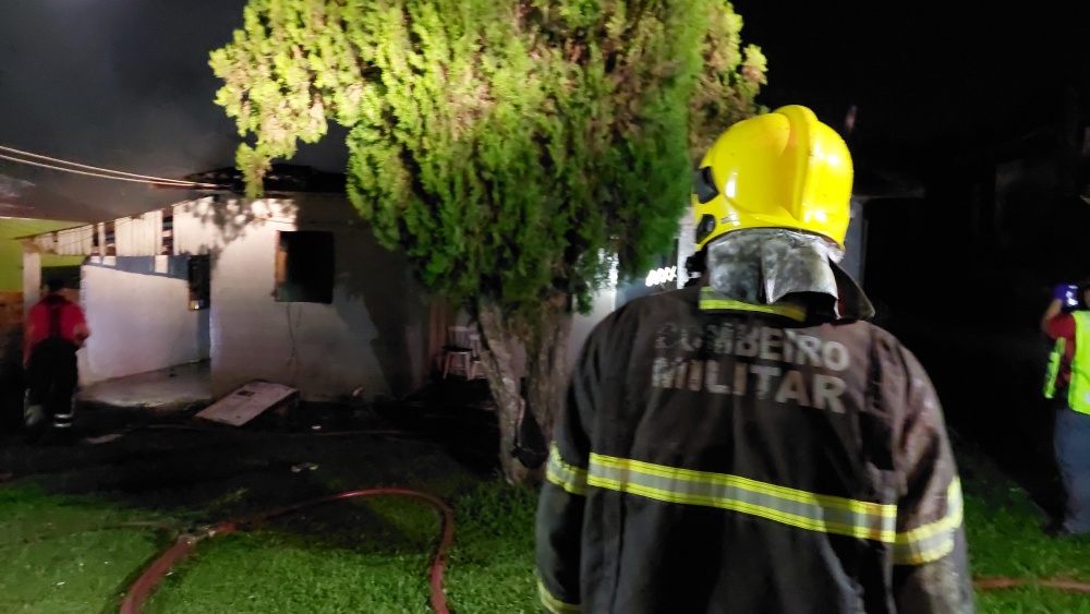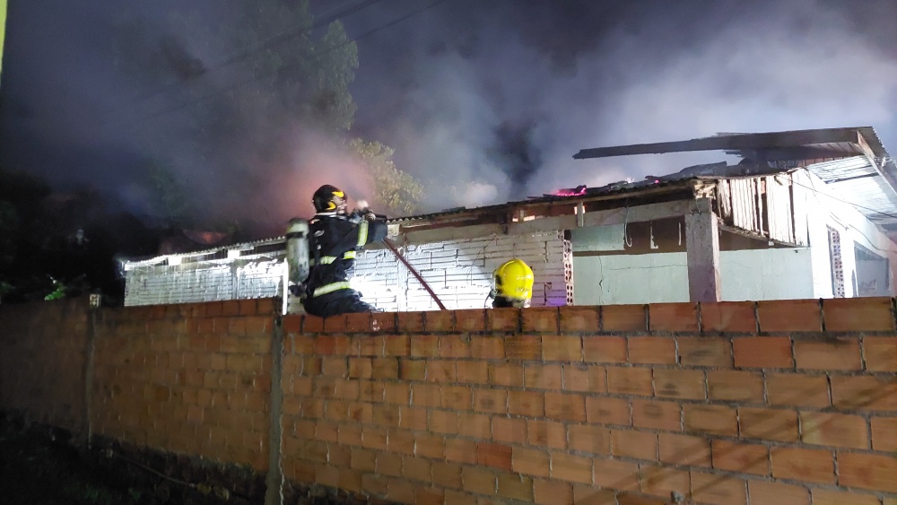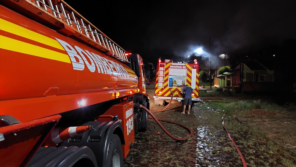 Na madrugada desta quinta-feira (05), uma casa mista foi completamente destruída por incêndio em São Miguel do Oeste. A ocorrência foi atendida pelos Bombeiros na Rua Serafim Bedin, no Bairro Jardim Peperi, por volta das 02h15.