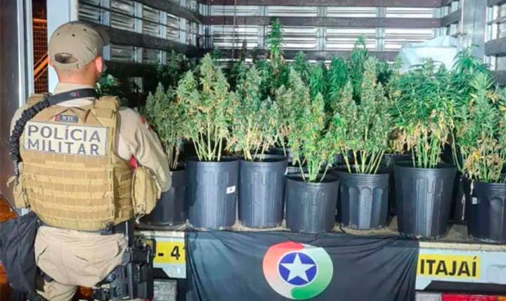 Uma "fábrica de supermaconha" foi encontrada pela Polícia Militar em Itajaí. A descoberta ocorreu após uma denúncia anônima, na madrugada desta sexta-feira (20). A PM localizou no imóvel três estufas montadas e funcionado com 42 pés de skunk, uma droga muito mais potente do que a maconha tradicional e com alto concentração de substância que causa dependência química.