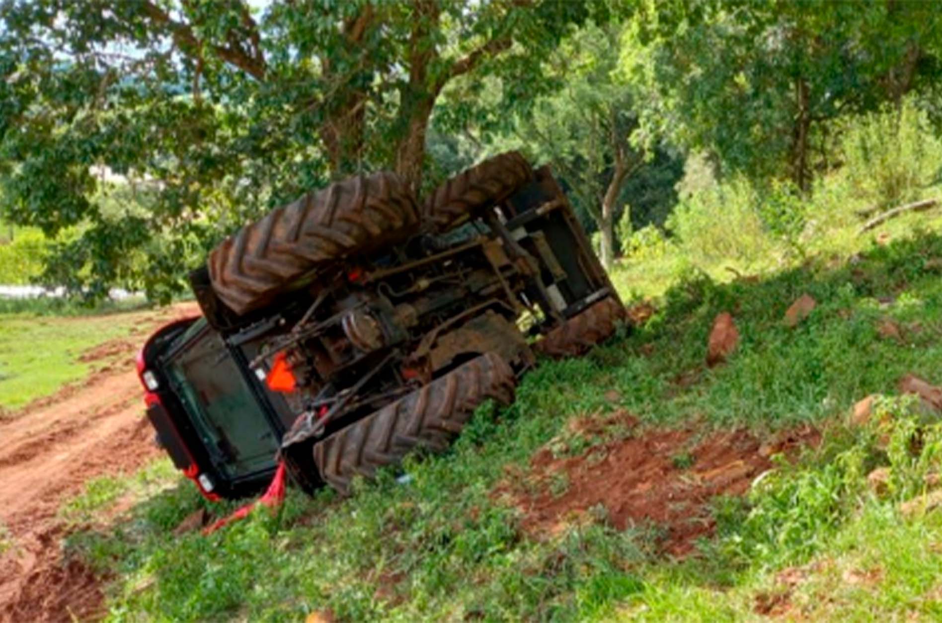 Os socorristas realizaram a estabilização do trator, com pontos de ancoragem em árvores e hastes de estabilização, para conseguir acesso a vítima. O homem relatou dores no joelho esquerdo e na região cervical. Ele ainda apresentou ferimentos nos braços e pernas.