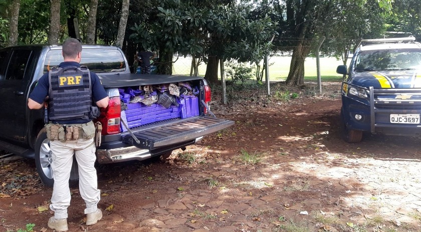 Ao abrir o compartimento de carga, os policiais encontraram diversos tabletes da droga. A vistoria veicular descobriu que a Hilux tinha sido roubada no Rio Grande do Sul e estava circulando clonada, com placas de outra picape de mesmas características.