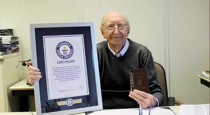 O brusquense recordista por tempo trabalhado, Walter Orthmann, bateu o próprio recorde em janeiro: aos 100 anos, ele completou 85 trabalhando na empresa RenauxView, de Brusque, Vale do Itajaí.