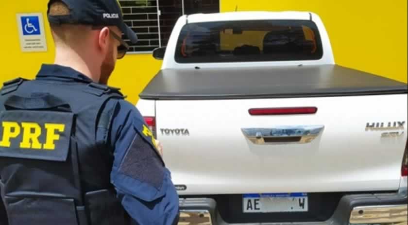 Na tarde de terça-feira (07), uma caminhonete da Argentina foi flagrada com placas ilegíveis, quando trafegava pela BR-282, em Chapecó, no Oeste de Santa Catarina. De acordo com a Polícia Rodoviária Federal (PRF), o veículo era uma Toyota/Hilux e tinha as placas dianteira e traseira com a camada de tinta retirada, fato que dificultava a fiscalização.