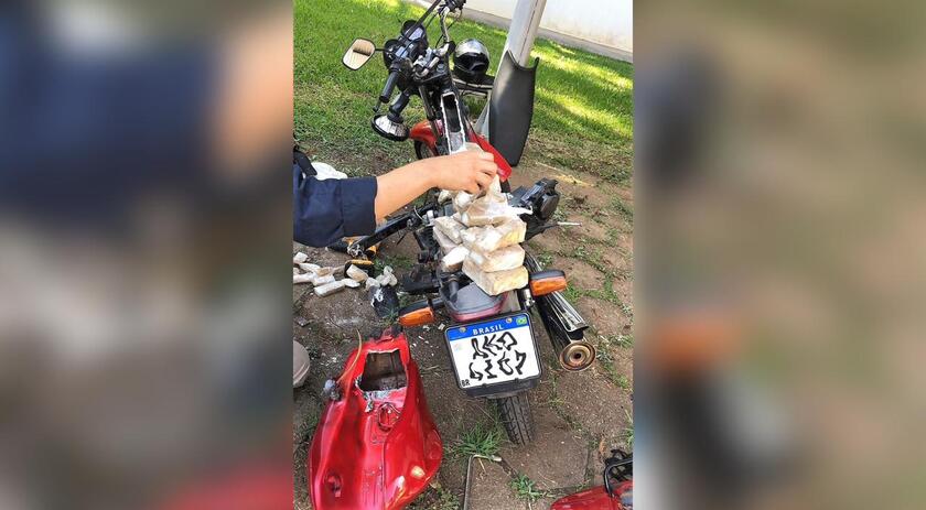 Durante a fiscalização a uma Honda/CG 150 de Foz do Iguaçu/PR, os agentes encontraram indícios de alterações na estrutura do veículo. Ao desmontar as peças, foram localizados diversos compartimentos falsos no quadro, no chassi e no tanque de combustível, onde havia várias embalagens contendo o pó branco.