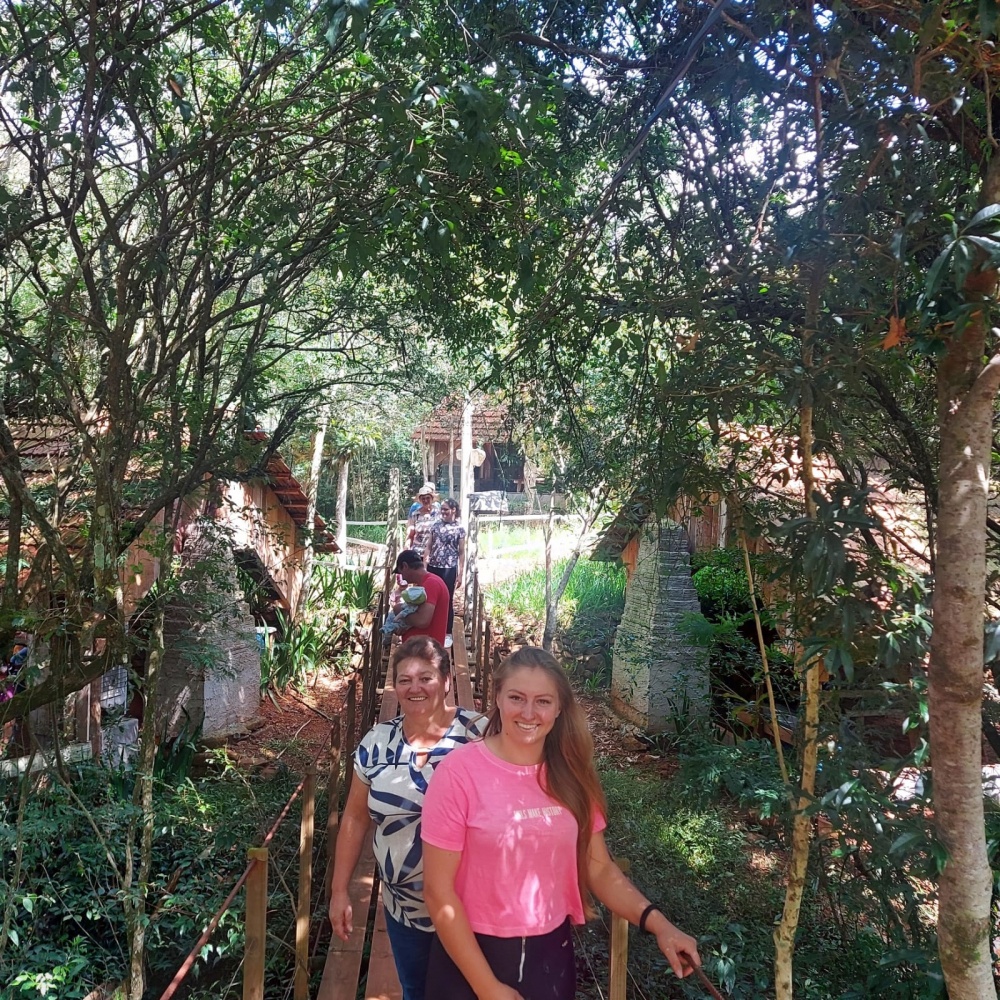 Dando sequência ao roteiro de visitação, os jovens puderem conhecer a Floricultura Terra & Flor, também na Linha São Roque. Este é um empreendimento idealizado por duas mulheres agricultoras, o qual comercializa cactos, suculentas e vasos. Continuando a visitação, os jovens se deslocaram até a Cachoeira e Panificadora Colonial Moro, localizada na Linha Santo Antônio. Nesta visita puderam conhecer a forma de organização de uma padaria no meio rural. Além disso, puderem conhecer e usufruir do espaço que está construção e que possui uma bela cachoeira localizada no Rio das Flores. Também realizaram uma caminhada, conhecendo a estrutura do local e usufruindo das belezas naturais.