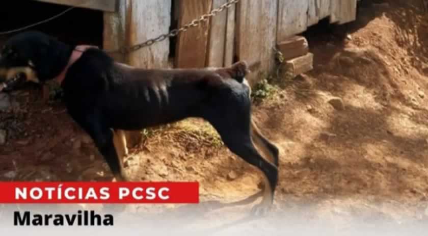 A Polícia Civil de Maravilha com auxílio da Secretaria de Proteção Animal da Prefeitura localizaram uma cachorro em situação de maus tratos na tarde de terça-feira (04). A ação se originou de uma denúncia de maus tratos aos animais em uma residência na Linha 51, interior de Maravilha.