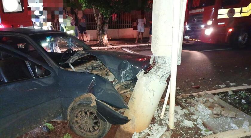 Três pessoas foram parar no hospital após um veículo se chocar contra um poste de energia elétrica por volta das 21h40 desta sexta-feira (7), na Rua do Comércio, no centro de Itapiranga.