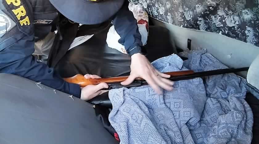 A PRF informou que o motorista não tem permissão para portar arma de fogo. Ele também não soube informar os da viagem e disse que usaria a espingarda para caçar.
