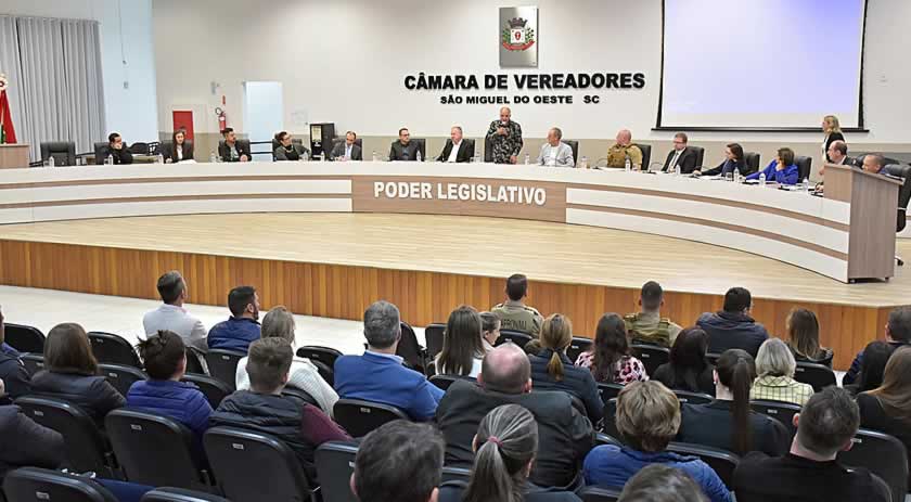 As causas e as possíveis soluções para o problema de segurança nas escolas e creches de São Miguel do Oeste foram o tema de uma audiência pública promovida pela Câmara Municipal de Vereadores. O encontro foi proposto pelo vereador Valnir Scharnoski (Nini – PL), que coordenou a audiência, e reuniu representantes de escolas, autoridades da área da segurança pública, profissionais da saúde mental, integrantes da sociedade civil, pais e professores. O evento foi realizado na noite de quinta-feira (20), no plenário da Câmara.